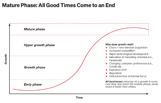 Business development typically follows the “S curve”. The S-curve, also known as the sigmoid curve, is a model used to represent the growth of a business or project over time. It typically shows an initial period of slow growth, followed by a period of rapid acceleration, and then a leveling off as the business or project reaches maturity. The period of acceleration typically sees strong revenue growth, with businesses focusing on user incentivization and the growth of its user base / ecosystem. Meanwhile, growth flatten when businesses focus on monetization, sacrificing stakeholder incentivization and user experience.